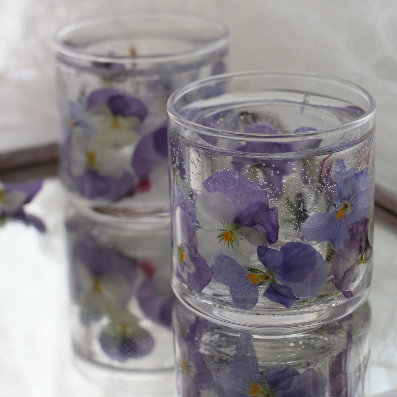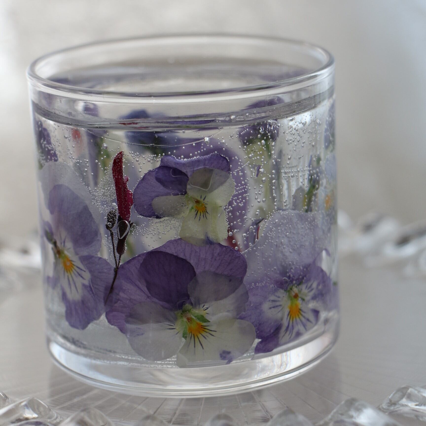 庭で育てたビオラを丁寧にドライにして、透明なジェルワックスで閉じ込めました。